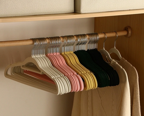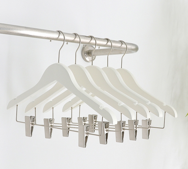 White represents purity and simplicity, creating a clean and neat clothing display that highlights product details and textures. Bridal boutiques, minimalist fashion brands, and homewear stores can use white hangers to establish a fresh and tidy ambiance.